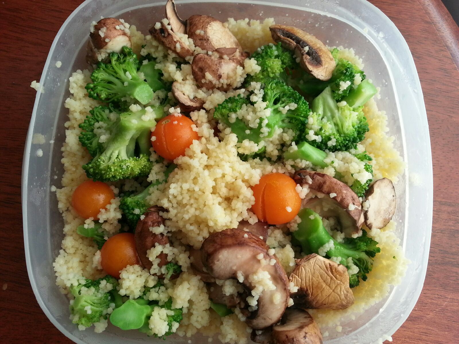 Just this week, I tossed couscous (it's almost instant!) with sauteed 'shrooms and tomatoes from my vacant neighboring apartment's tomato plant.